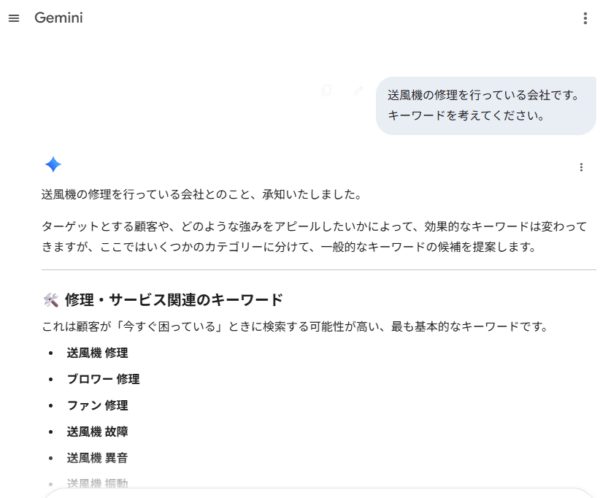 自社の検索キーワードも生成AIに聞いてみてください。